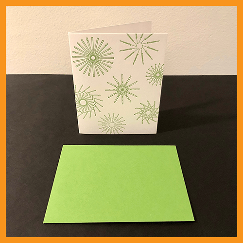 The box set includes either 10 cards and 10 envelopes or 15 cards and 15 envelopes. The envelope color matches the color of the snowflakes on the front.